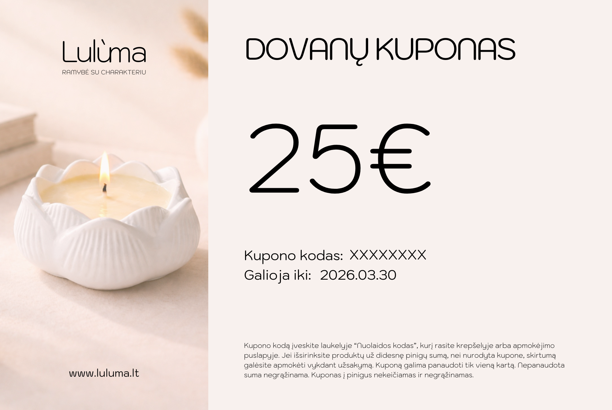 Ieškantiems dovanos – Lulùma siūlo dovanų rinkinius bei elektroninius dovanų kuponus. Tai subtilios, bet charakteringos dovanos namams.