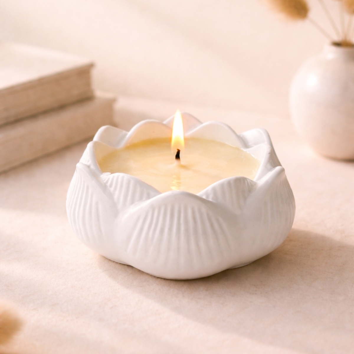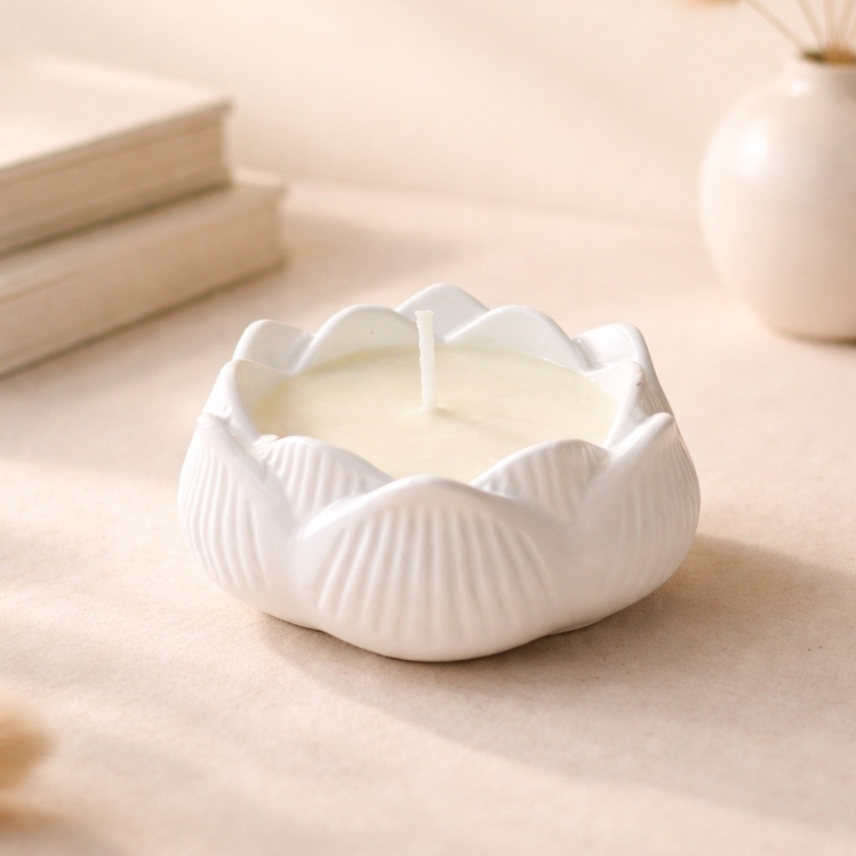 Subtili, tačiau charakteringa – ši žvakė sukurta tiems namams, kuriuose ramybė yra sąmoningas pasirinkimas. Baltos lotoso formos žvakidės skersmuo – apie 8 cm, todėl ji lengvai pritaikoma tiek kavos staliukui, tiek miegamojo komodai ar vonios ritualams.